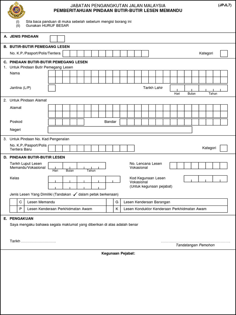 Let's change the world together. Borang 'jpj l8' yang telah diisi 2. Dokumen sokongan (tandakan √ ). Bila perlu kemuka pembaharuan lesen? Borang permohonan pembaharuan lesen gdl jpjl8 by wahyudinaziz in types legal forms borang renew gdl and borang jpj l 8.