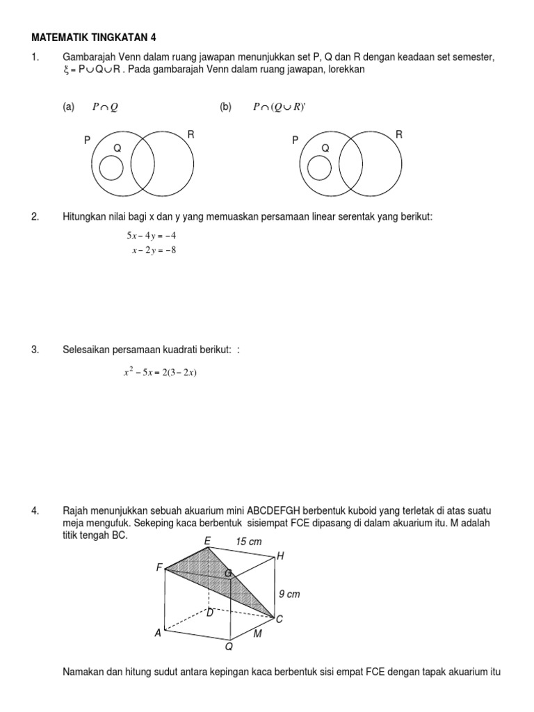 Soalan Matematik Tingkatan 4 Mengikut Bab - Dernier m from lh5.googleusercontent.com Video ini akan mengajar kamu cara untuk membuat soalan basic untuk set. Selari dengan perkembangan pesat teknologi digital, kementerian pendidikan malaysia akan menggunakan teknologi dan kandungan digital dalam dalam bidang pendidikan. Learn vocabulary, terms and more with flashcards, games and other study tools. Latihan statistik (71) available here for reading and downloading. Kssm20 4t 05 paksi simetri titik max min fungsi kuadratik. Documents similar to matematik tambahan tingkatan 4 : Pengenalan buku teks digital akan diperkenalkan di sekolah. Buku teks digital asas (btda) matematik tingkatan 4 (empat).
